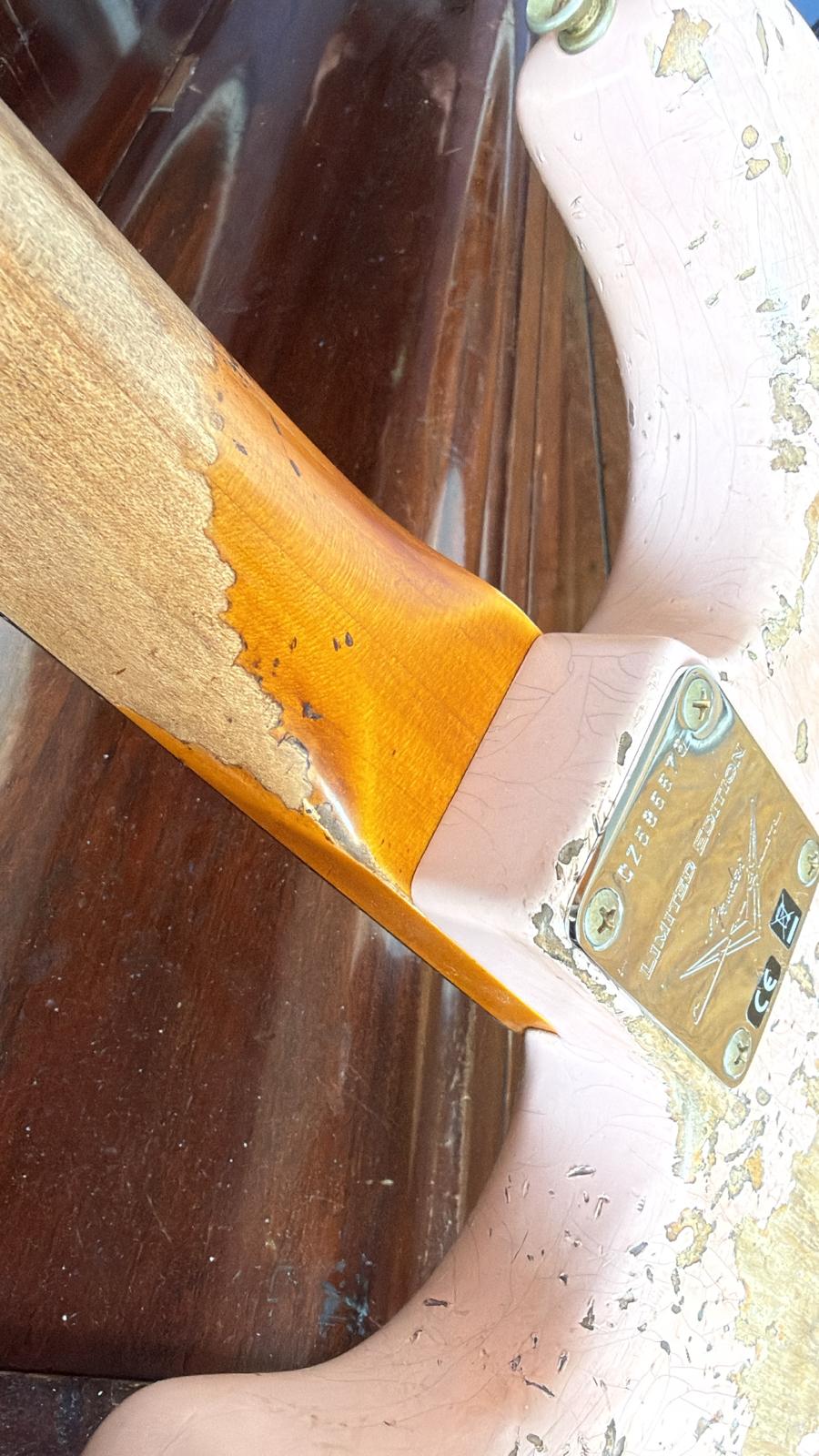 Diese limitierte Custom Shop Strat basiert auf frühen 60s-Spezifikationen und kommt in einem hervorragend umgesetzten Super Heavy Relic Finish in Shell Pink over Sunburst. Das Aging ist außergewöhnlich authentisch – lebendig, organisch und mit genau dem richtigen Maß an Charakter. Sie fühlt sich vom ersten Moment an wie ein über Jahrzehnte gespieltes Instrument an.