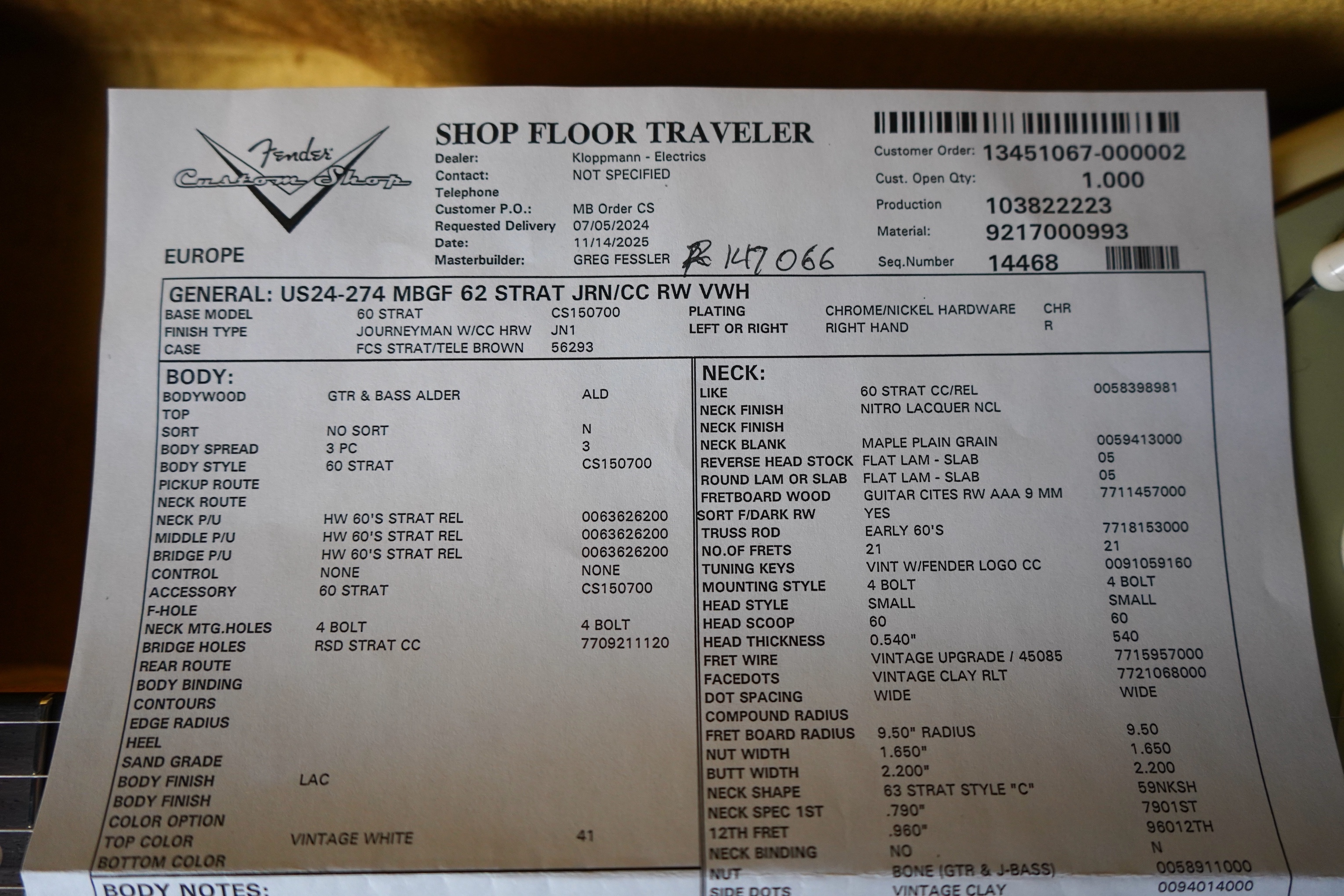 Fender Custom Shop 1962 Stratocaster – Journeyman Relic Vintage White