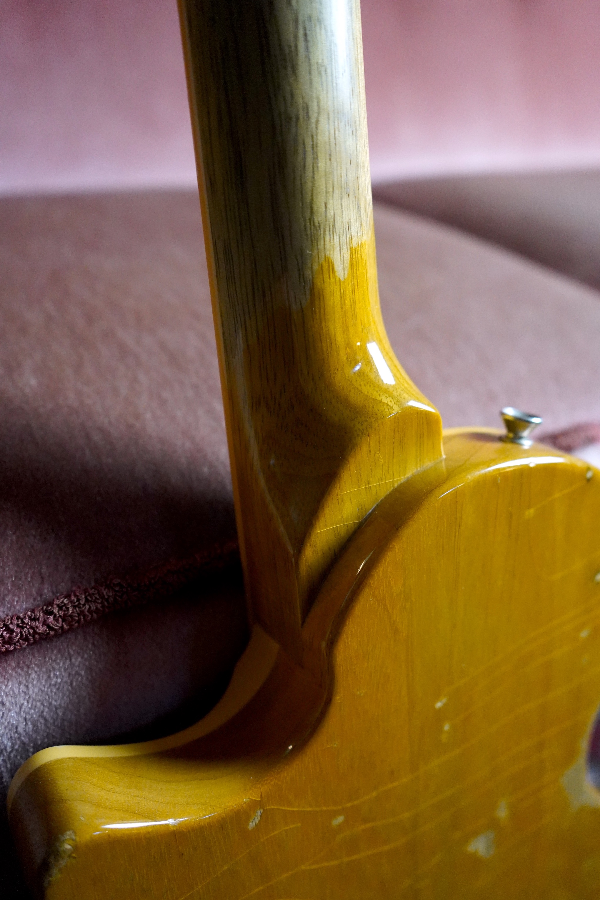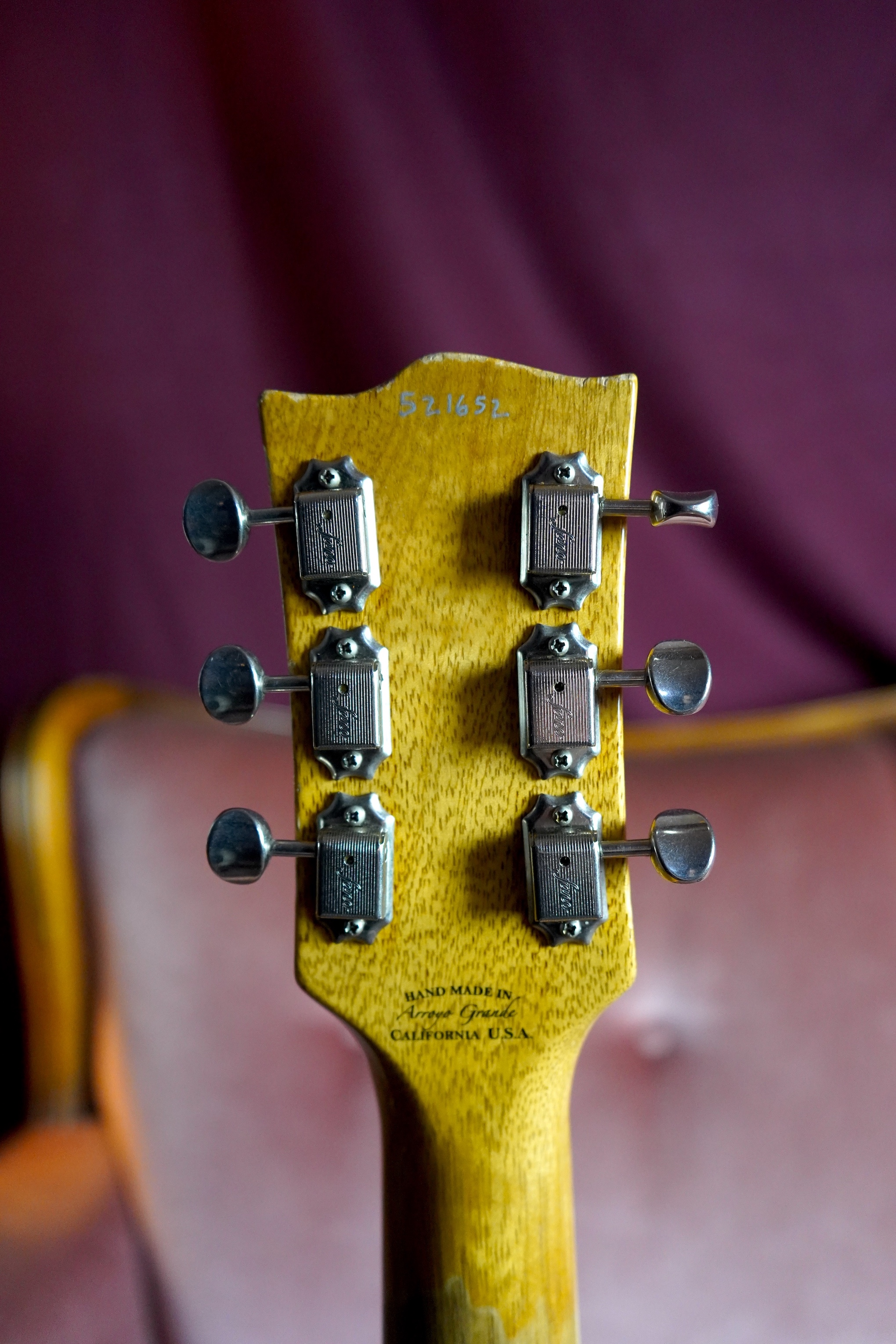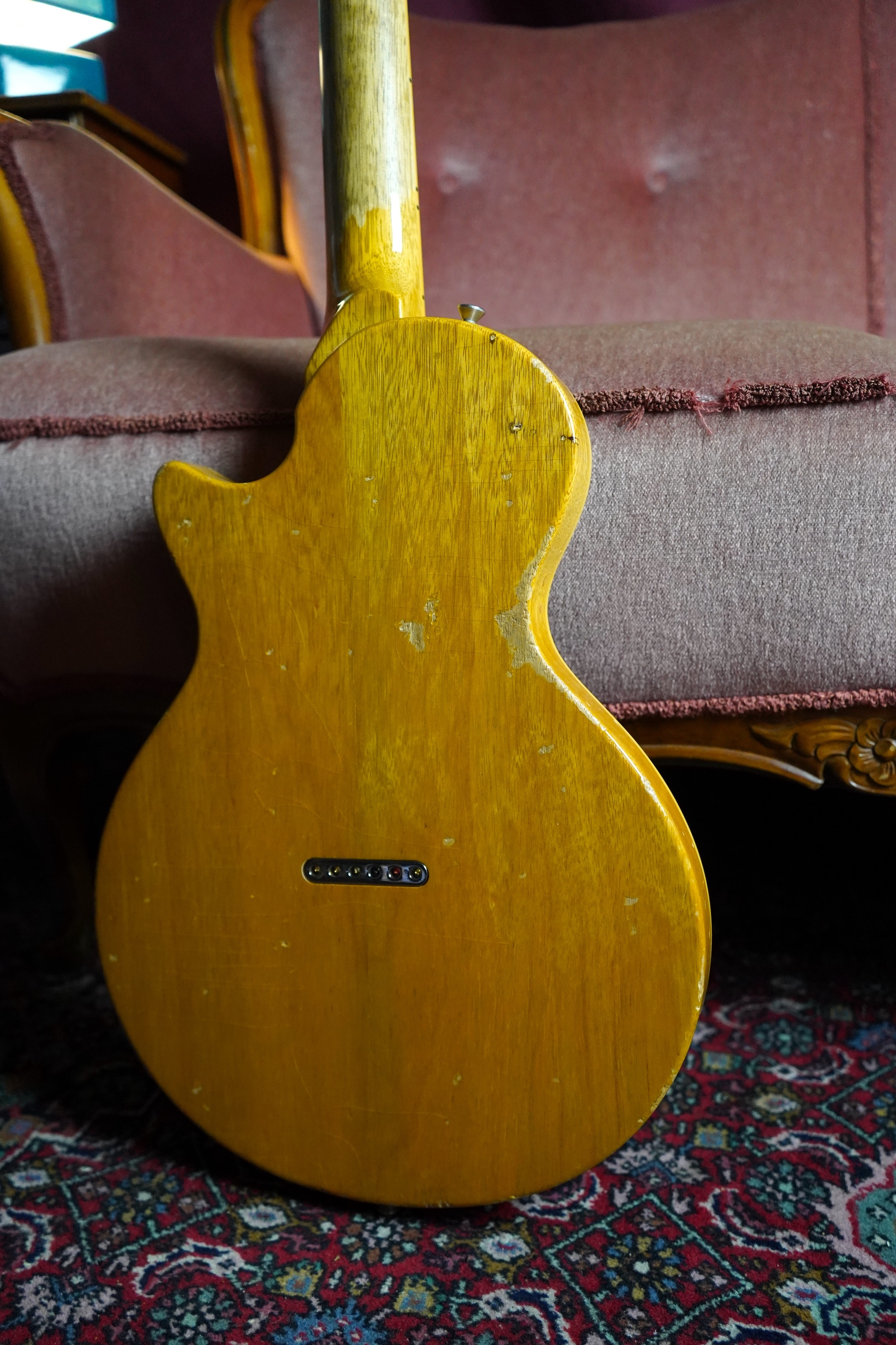 The pickups have been replaced with my Kloppmann-Electrics BC49 set. The guitar is also fitted with a handmade pickguard that I made myself.