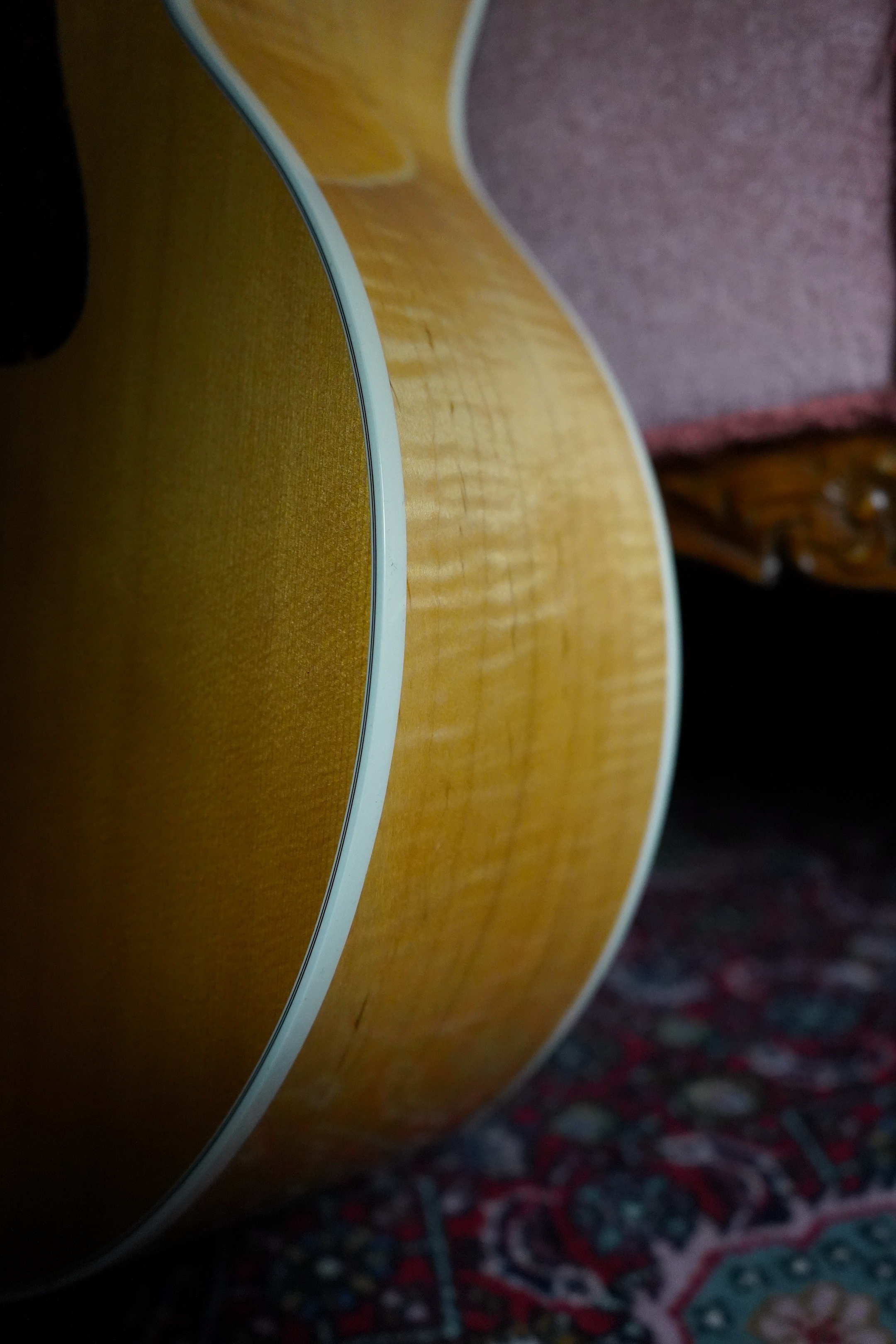 Offered here is a near-mint Guild JF-30-12, finished in a beautiful Blonde top and complete with its original hard case. This guitar comes from Dirk Busch and was used exclusively in the studio. It is believed to date from the early 1990s and shows remarkably little playwear for its age. The frets are in very good condition, reflecting careful ownership and limited use.